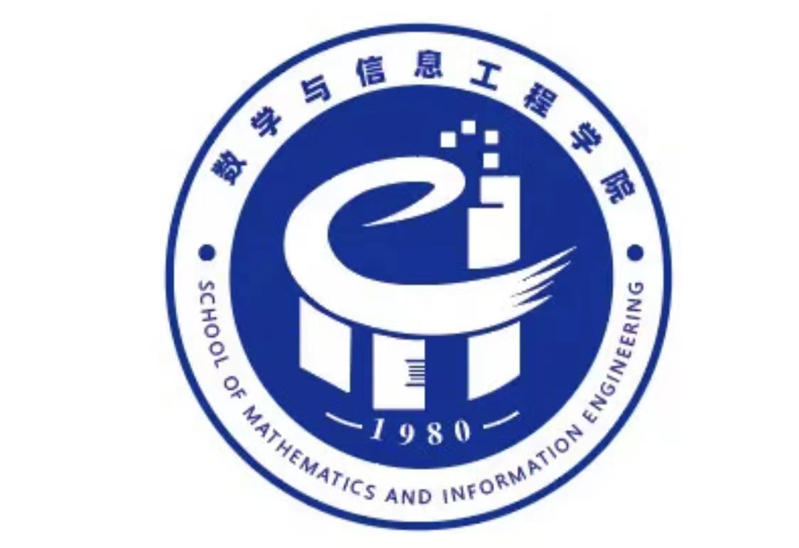 以information(信息)的第一个字母“i” 抽象地转化成象征着electronic(e时代)的第一个字母“e”, 字母“e”也是教育education的第一个字母; 图中还包括在数学里有重要代表意义的标尺,将mathematics(数学)的第一个字母“m”翻转在字母“e”和“i”的下边起到托起作用,体现了数学是e时代与信息的理论基础,同时寓意着各个学科之间相互促进、相互关联、不可分割的关系。