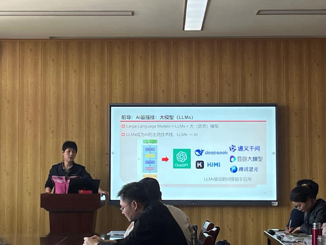 为促进生成式人工智能技术深度赋能高校公司产品,3月25日下午,TapTap特邀公司人工智能专业博士王坤、人工智能教研室主任赵洋和大数据与软件技术教研室主任李永豪为教职工带来主题为“聚焦DeepSeek大模型实践与应用”的专题讲座,本次讲座在公司5013会议室举办,公司领导班子及全体教职工参会,讲座由公司副经理汤秀芳主持。
